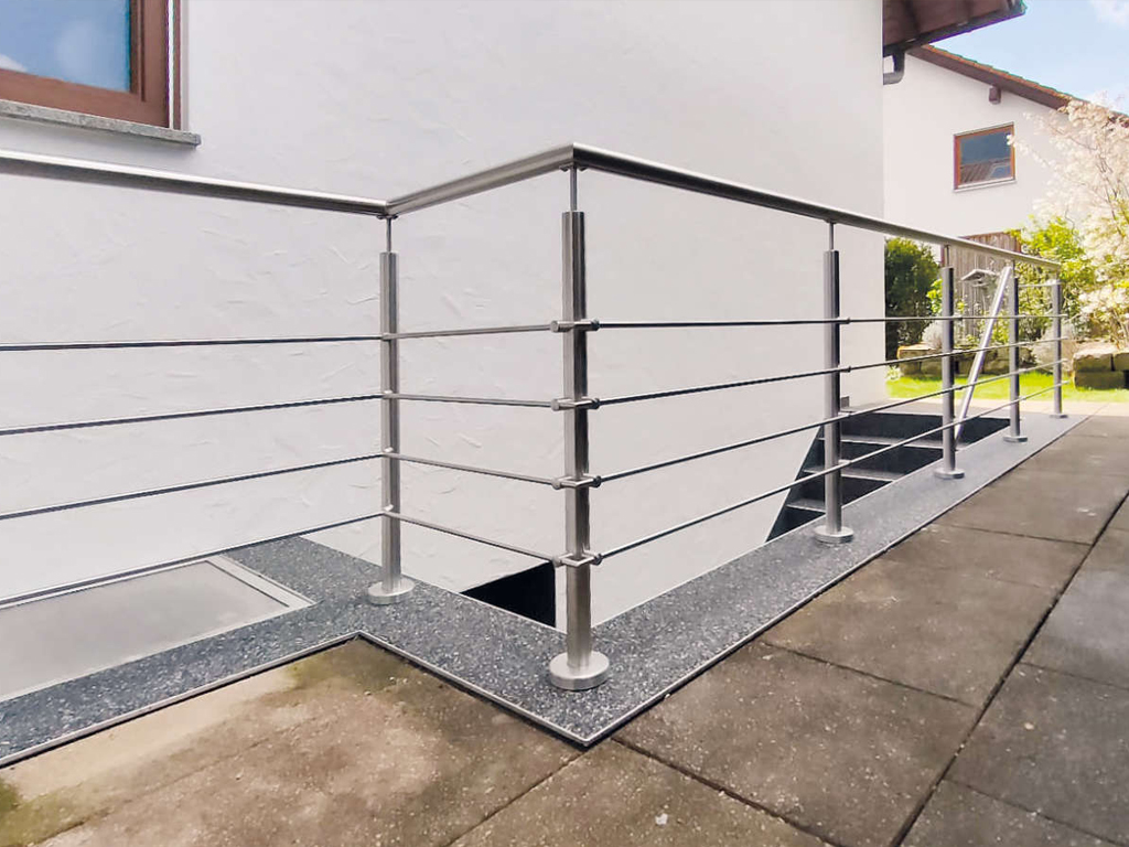 Wir bieten Ihnen eine große Auswahl an maßgefertigten Edelstahlgeländern in verschiedenen Ausführungen. Unsere Geländer sind wartungsfrei und zeichnen sich durch ihre Stabilität, Langlebigkeit und Ästhetik aus.