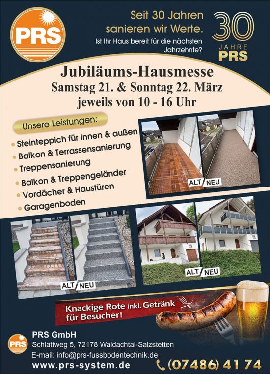 Bei PRS GmbH steht das Vertrauen und die Zufriedenheit unserer Kunden im Mittelpunkt – wir sind Ihr professioneller Partner für Sanierungen seit 1989! Wir sind spezialisiert auf das Verlegen von Steinteppichen im Innenbereich und Außenbereich, sowie die Balkonsanierung, Terrassensanierung und Treppensanierung. Des Weiteren rundet unsere große Auswahl an maßgefertigten Edelstahlgeländern unser Angebot ab.